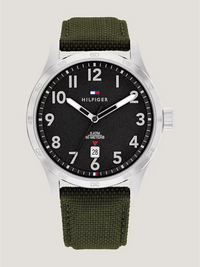 TOMMY HILFIGER STAINLESS STEEL CORDURA STRAP WATCH